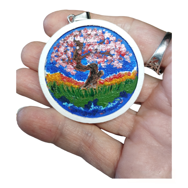 "Ce médaillon Cerisier Japonais est une célébration de la beauté éphémère et de la délicatesse printanière, capturée dans la chaleur naturelle du bois. Chaque pétale peint est une invitation à la contemplation, un hymne à la renaissance et à la poésie des paysages fleuris, offrant une touche de sérénité et d'élégance intemporelle."