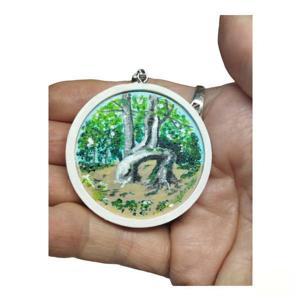 "Ce médaillon, peint avec délicatesse sur la noblesse du bois, est un hommage au légendaire Arbre éléphant de Duerne. Chaque détail de cet ancien hêtre, avec ses racines puissantes et son tronc noueux, évoque une force tranquille et une sagesse séculaire. Porter ce médaillon, c'est emporter un fragment de nature et d'histoire, un symbole d'enracinement et de grandeur."