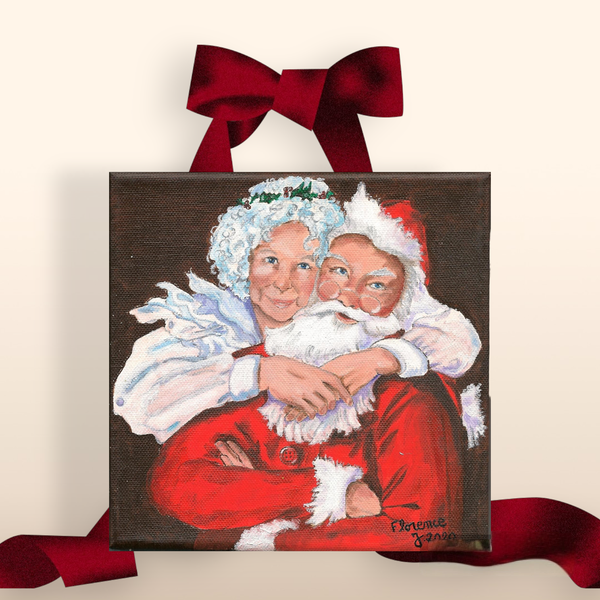 Cette douce scène de Noël représente un moment complice entre le Père Noël et son épouse, dans une étreinte pleine d’affection et de bienveillance. Leurs regards lumineux et leurs sourires chaleureux évoquent toute la magie et la tendresse des fêtes de fin d’année.