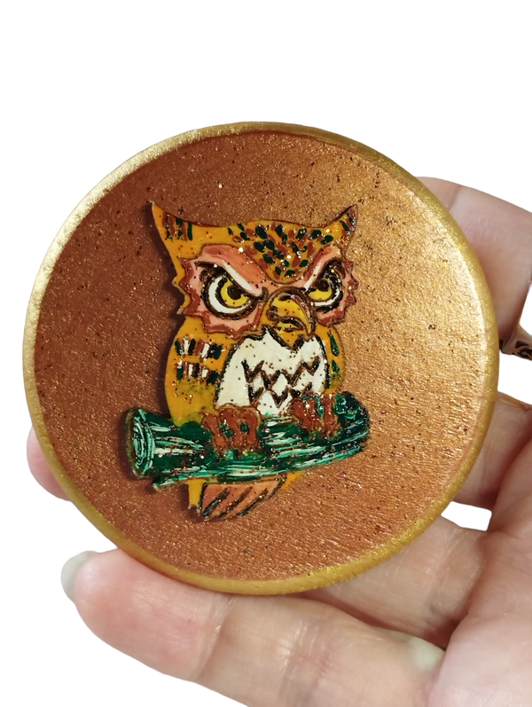 "Laissez-vous charmer par la présence apaisante du magnet en bois "Hibou n°6", une pièce unique entièrement peinte à la main par mes soins. Issu de la collection "New Year", ce hibou, gardien des secrets de la nuit et symbole de sagesse, est une invitation à accueillir les nouveaux départs avec sérénité et intuition. C'est un petit protecteur discret, parfait pour apporter une touche de quiétude et de contemplation à votre espace, rappelant la magie des nuits paisibles et les promesses de l'année à venir."