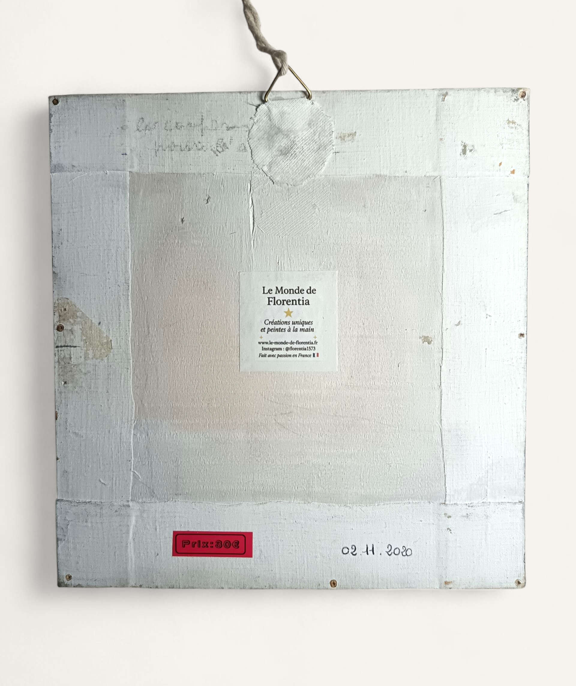 Peinte sur un support de récupération, cette création allie poésie, sensibilité et démarche artistique authentique.