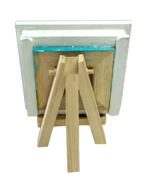 Support : Toile en coton montée dans un cadre miniature en bois peint à l’acrylique blanche