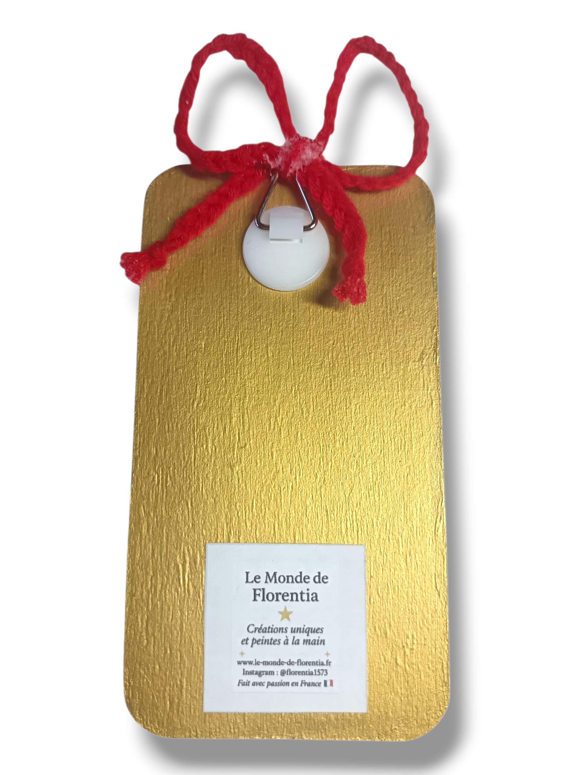 Cette douce création artisanale est réalisée sur une planche fine en bois, entièrement peinte à la main à l’acrylique, dans un univers chaleureux et poétique.