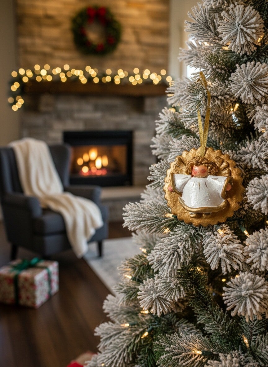 Cet adorable petit ange, entièrement modelé à la main en pâte à sel, apporte une touche chaleureuse et dorée à votre décoration de Noël.
