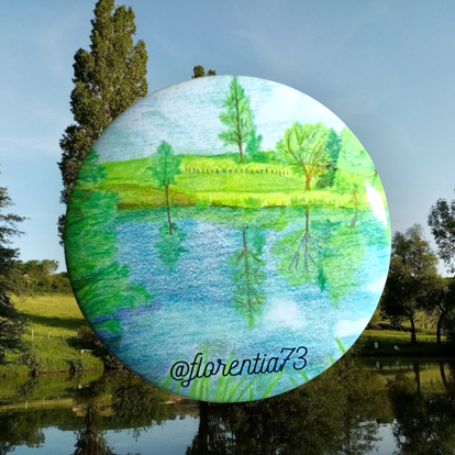 « Reproduction d’un dessin aux crayons de couleur, ce magnet en plastique représente l’étang familial à la Borgia (DUERNE), créé en 1986 par mon père et mon oncle. Plus qu’un paysage, il est le reflet d’un souvenir cher, entre nature, héritage et mémoire. »